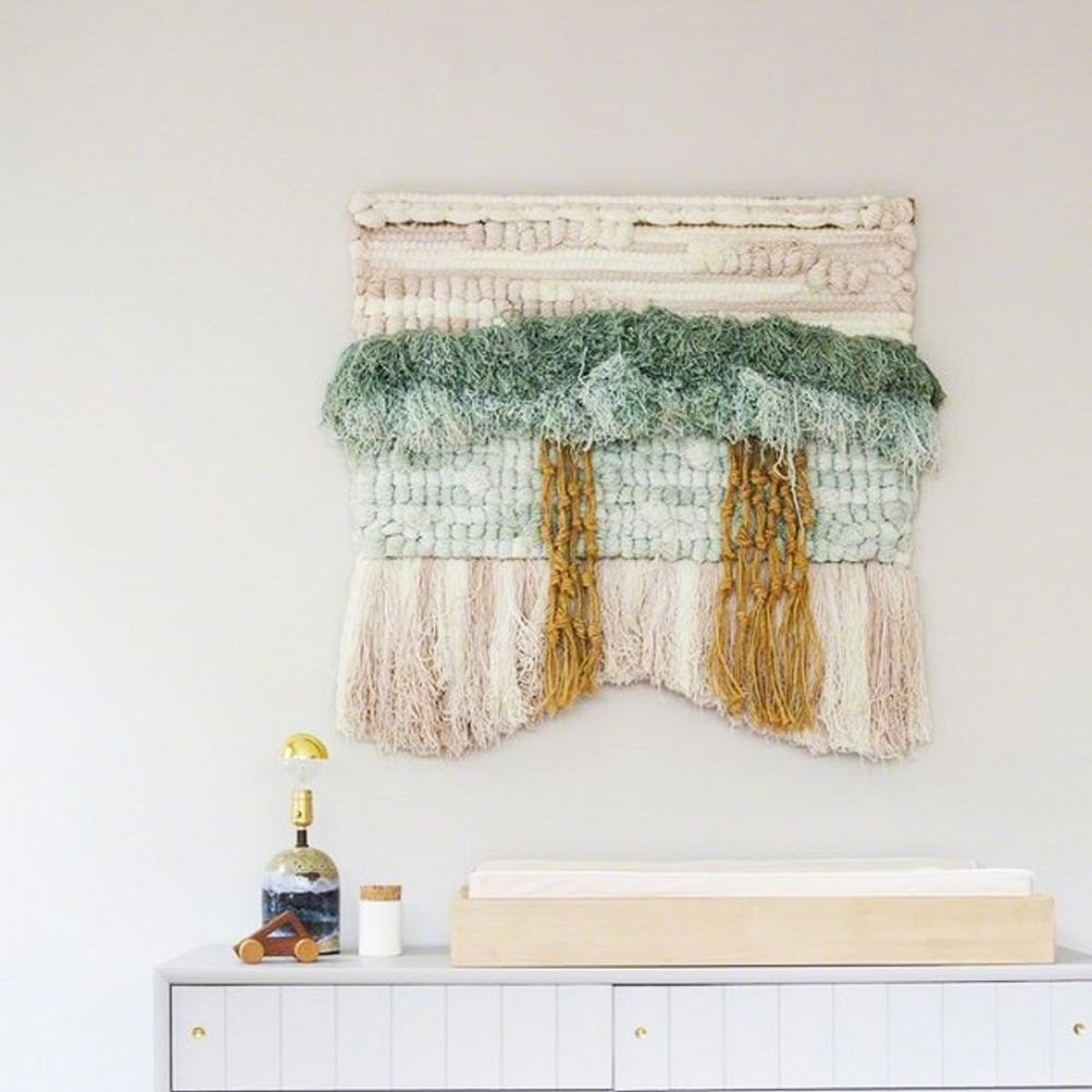 21. Woven Wall Art: If paintings and art prints aren’t your cuppa tea, then woven wall art is another way to add individuality to your space. Wall hangings will add unexpected texture to your space and are a great way to tie in various colors into a room. (via Lonny)