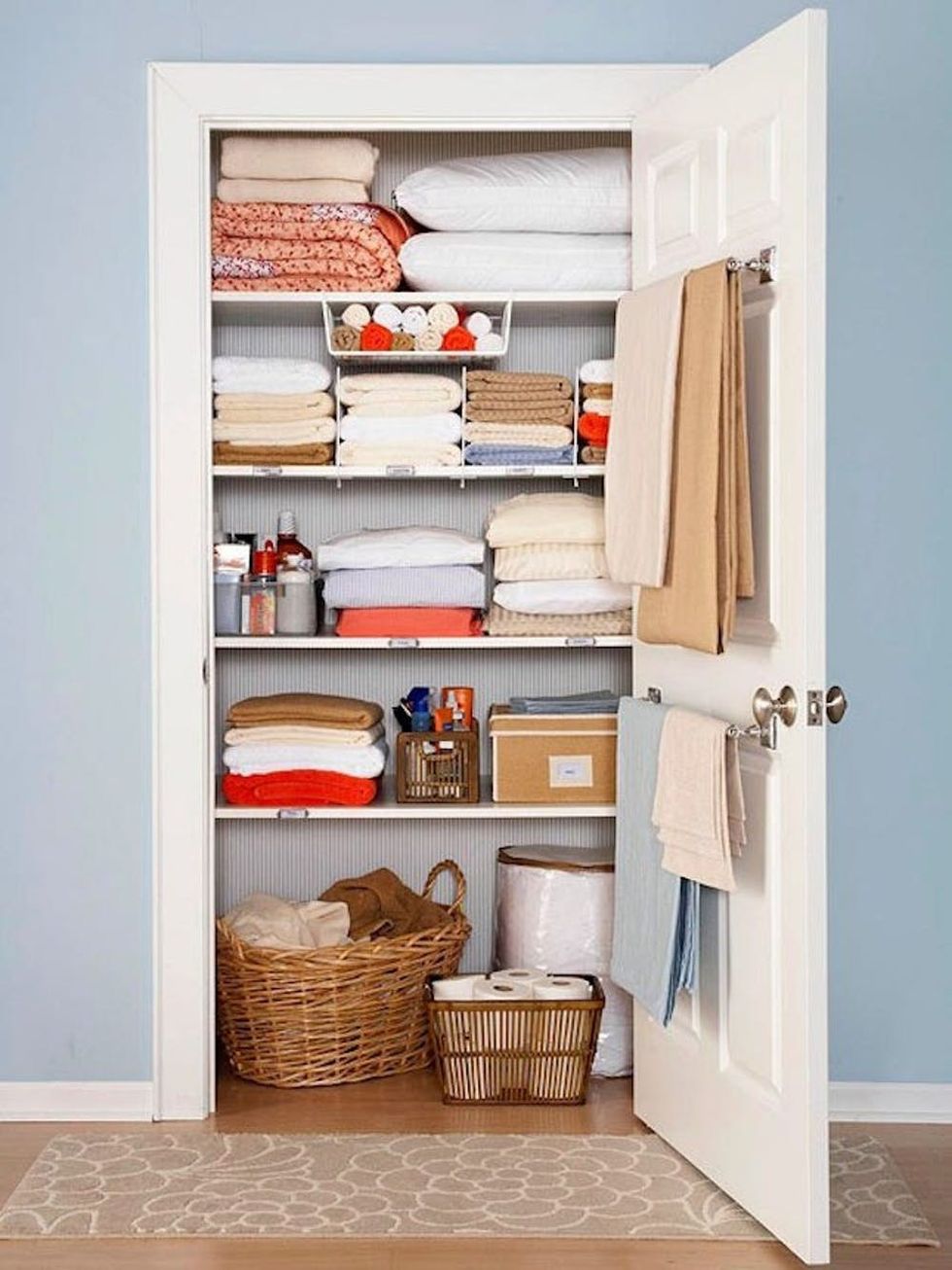 6. At-the-Ready Linen Closets: It’s time to think beyond neatly folded towels when it comes to your linen closet. With a few dividers and suspended baskets, you can totally maximize that baby in a snap. (via Better Homes and Gardens)