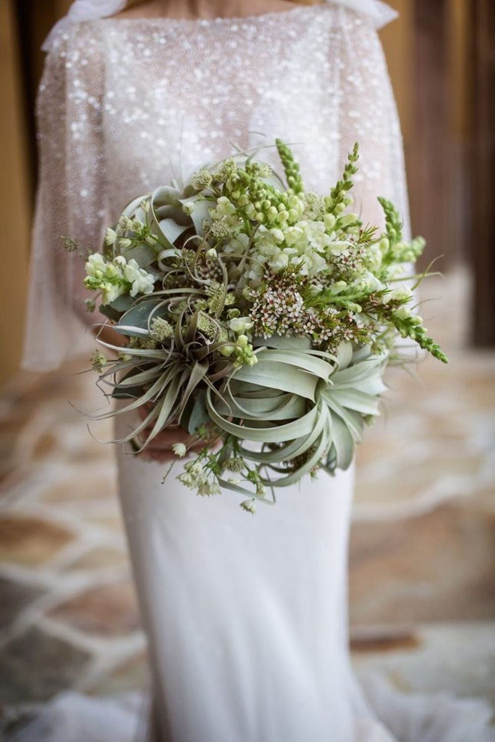 5. All Green Bouquets: With “Greenery” as Pantone’s Color of the Year, brides will want to incorporate this stunning shade in their wedding details. A simple, all-green bouquet is the prettiest match with a white gown. (via Meant2Be Events, Jasen Arias Weddings)