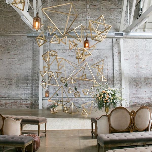 1. Geometric Decor: Geometric shapes are totally in for weddings this year. Hang pieces from the ceiling, or use them as centerpieces to get a super modern look. (via GATHER Events, J Wiley Photography)