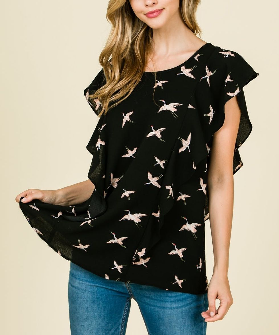 2. “From bold botanical and bird prints on apparel to indigos and shells inspired by the sea, 2019 will pull inspiration from nature. Whether it’s a head-to-toe floral suit with pops of on-trend peach, a handbag detailed with delicate butterflies, or anything copper (the shine of the season), this trend is sure to be a breath of fresh air.” — Lori Twomey, Zulily Chief Merchant