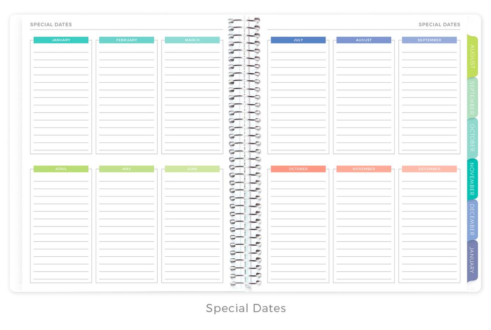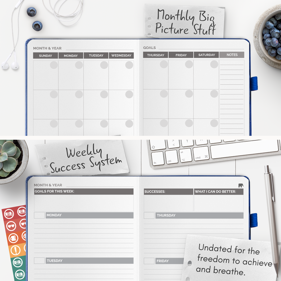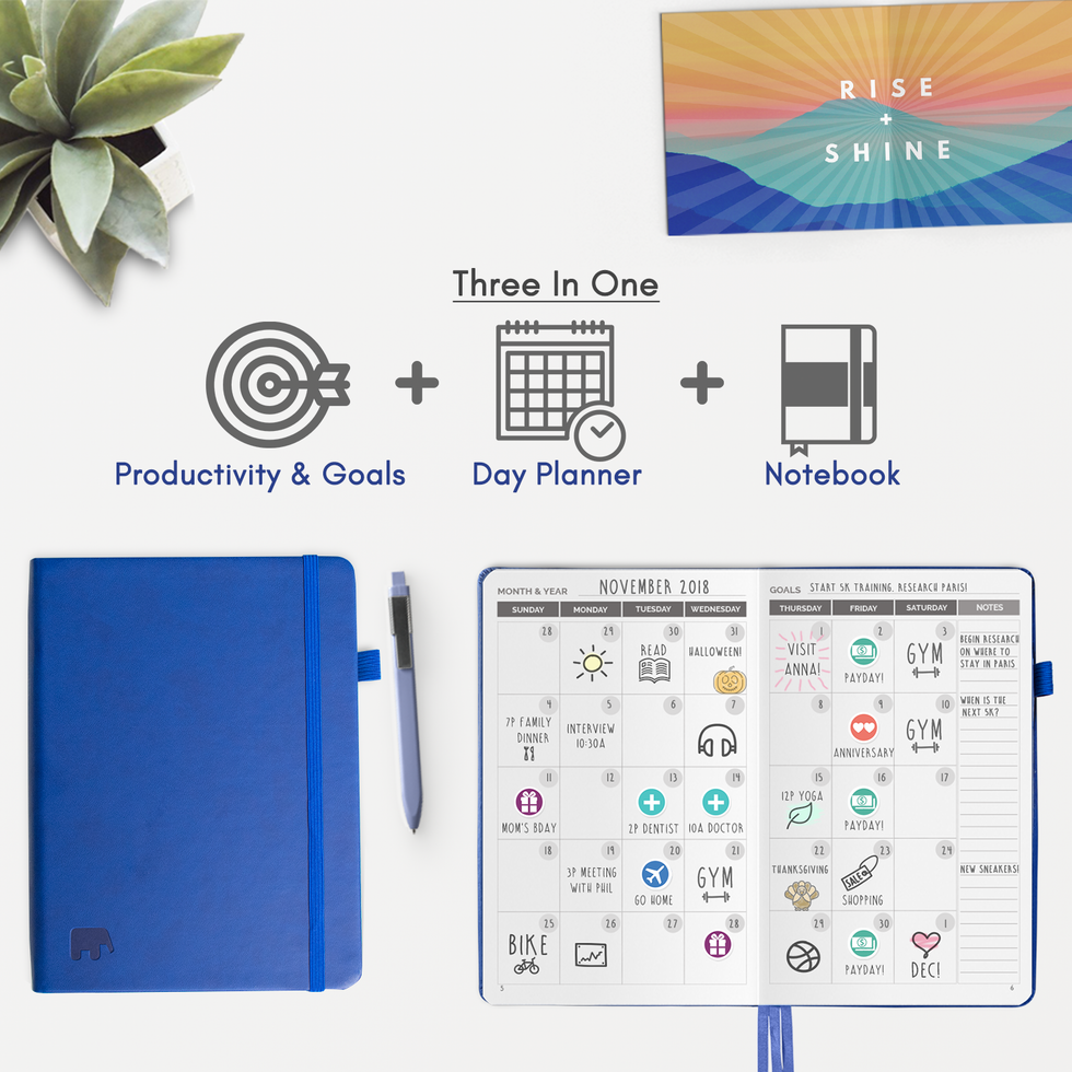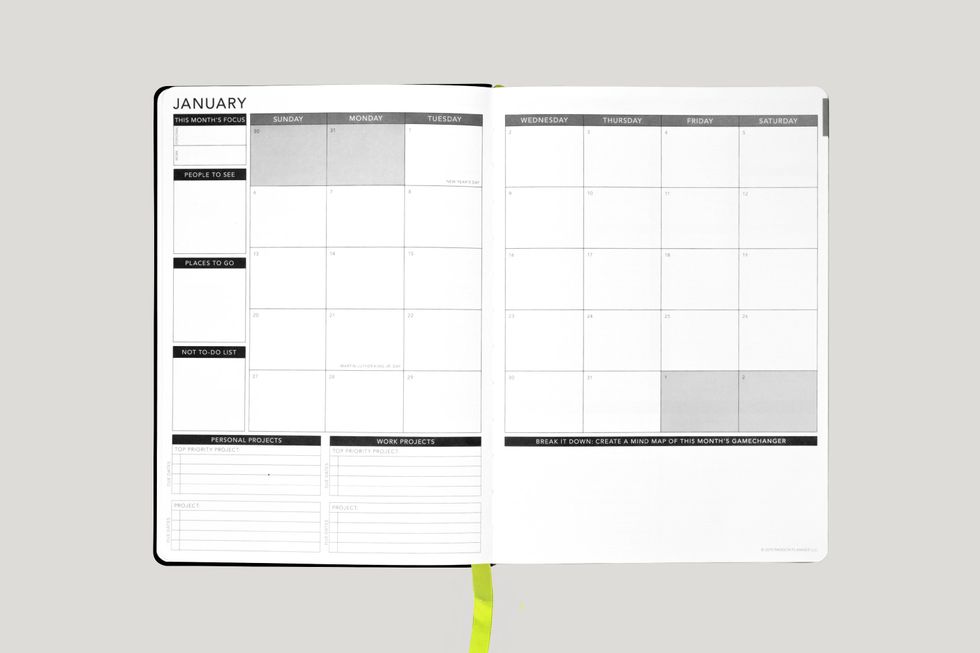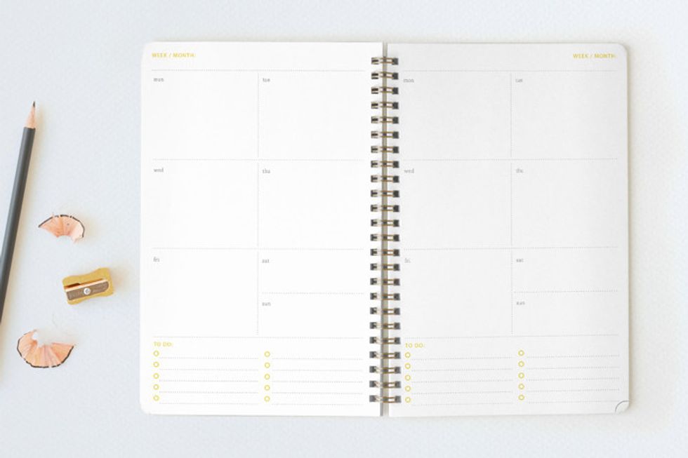 Simple Elephant Planner ($18): Don't let the name deter you: simple does not equal boring in this goal-oriented planner. The Simple Elephant Planner features a clean, high contrast design to help you focus on what's most important — achieving your goals. Focus pages in the beginning of the planner help you clarify your personal targets. The undated weekly and monthly pages mean you can start whenever you want and pick up where you left off in case you get off track. Note your successes, identify your opportunities, and log your progress to keep yourself on task. Extra note pages in the back make it easy to jot down ideas or make checklists to further keep you organized and focused. (Swipe for a peek inside)