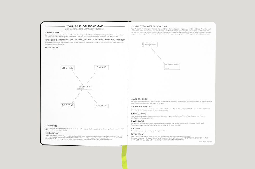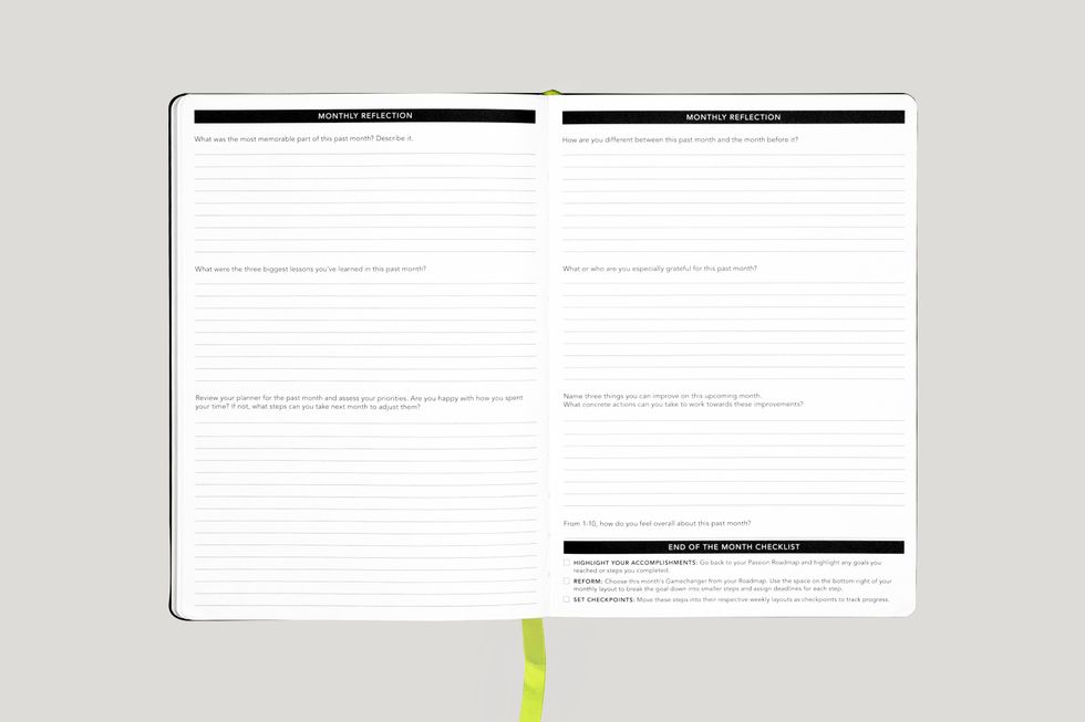Self Planner ($20): The Self Planner offers an introspective look at your current self while planning for your best self. Similar to other goal-setting planners, this planner begins with encouraging you to write down your major goals and aspirations. It then helps you strategically prioritize the necessary steps in order to accomplish your goals. Because of the level of detail it demands, it only covers six months at a time but you'll be amazed by what it helps you accomplish in that time. (Swipe for a peek inside)