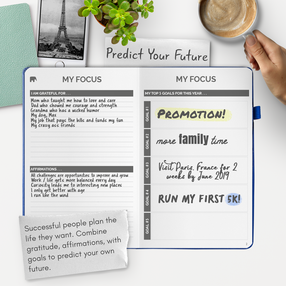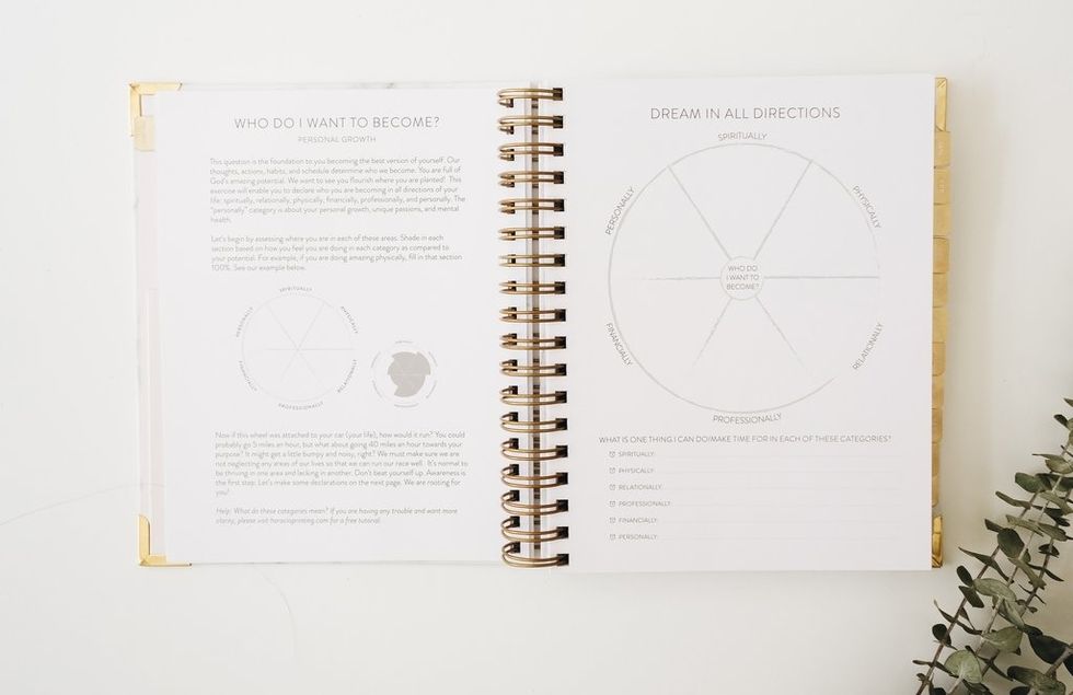My Infinite Agenda ($58): Vision boards are a great way to showcase your goals and plans in an unstructured and fully creative way. The Infinite Agenda starts with space for your vision and follows up with questions and prompts for you to further examine what it is you want for yourself. Start your day by writing down what you're looking forward to and end it with gratitude. Continuous affirmations keep you focused as you move closer to achieving your vision. Start and stop anytime with the undated version. (Swipe for a peek inside)