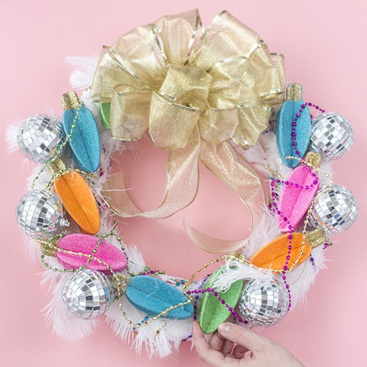31. DIY Disco Ball Wreath: Dazzle your holiday party guests as they approach your door. If first impressions count, then this disco ball wreath will surely win them over. (via A Beautiful Mess)