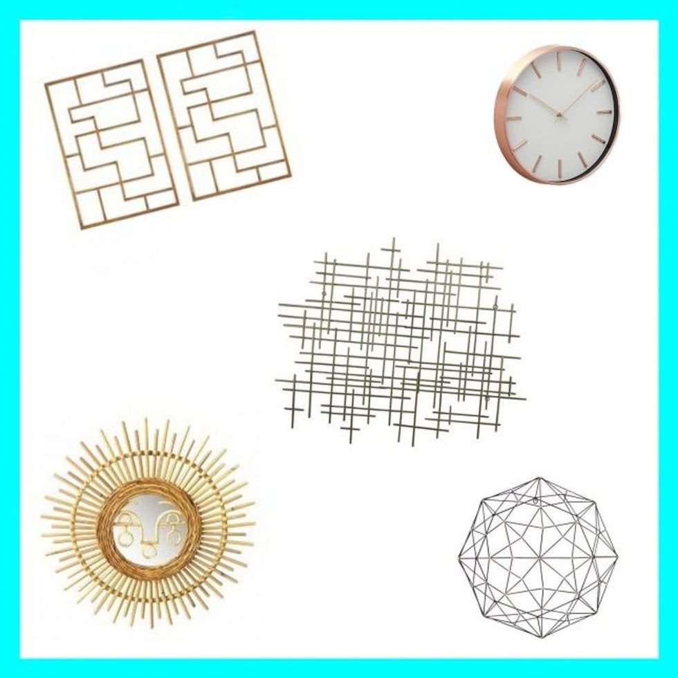 Threshold Mid-Century Gold Wall Decor ($55), Crate & Barrel Copper Wall Clock ($50), Justina Blakeney Ida Mirror ($104), Threshold Octagonal Metal Wall Sculpture ($25), Farrah Wall Decor (174, set of two)