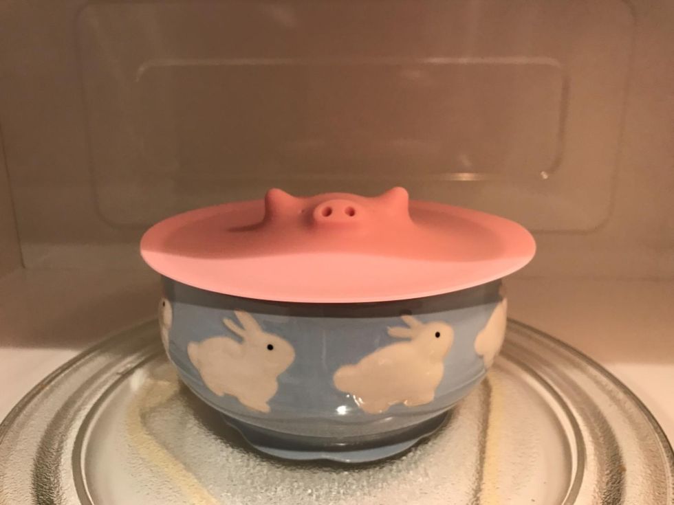 This pink piggie steamer is such a great, cute product! It is the perfect thing for re-heating soups in the microwave! It lets out steam from the little piggie nose and makes sure that no soup splatters all over the microwave. It is also great for steaming veggies in a pot!