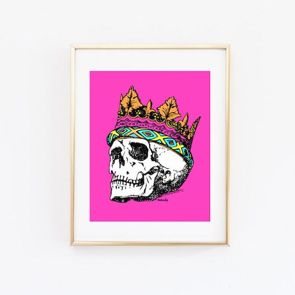 7. That Mia Life Skeleton King Art Printable ($4): This modern boho art print can be created in less than 10 minutes. All you need is a printer and a metallic frame. This would add a *pop* of color and look great on the mantle in your living room.
