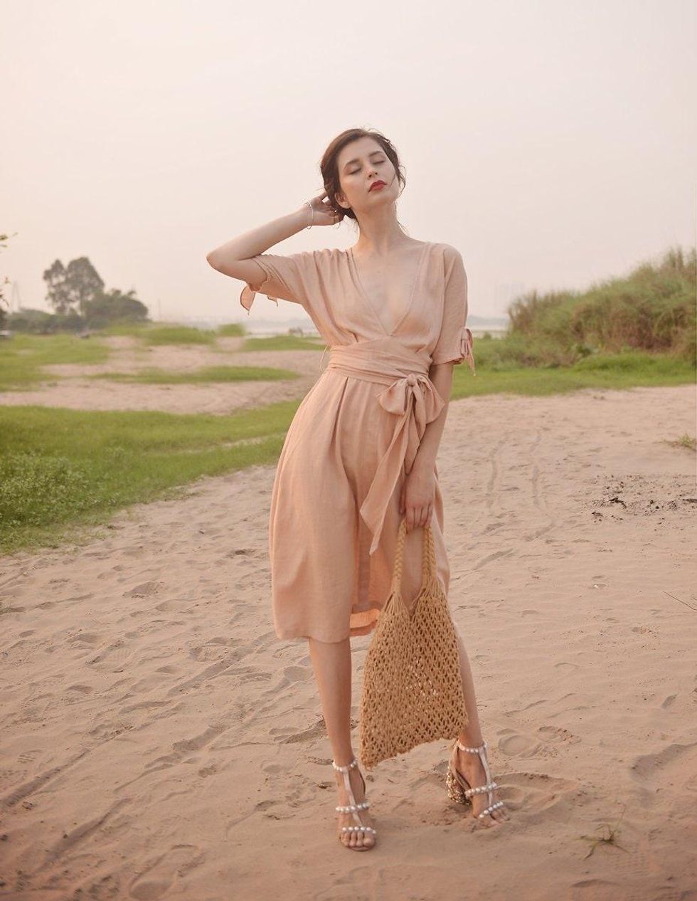 Linen dresses are this summer's most comfortable and low-maintenance outfit. Wear the Linen Dress with some strappy brown sandals, soft blush makeup, and a big hair clip.