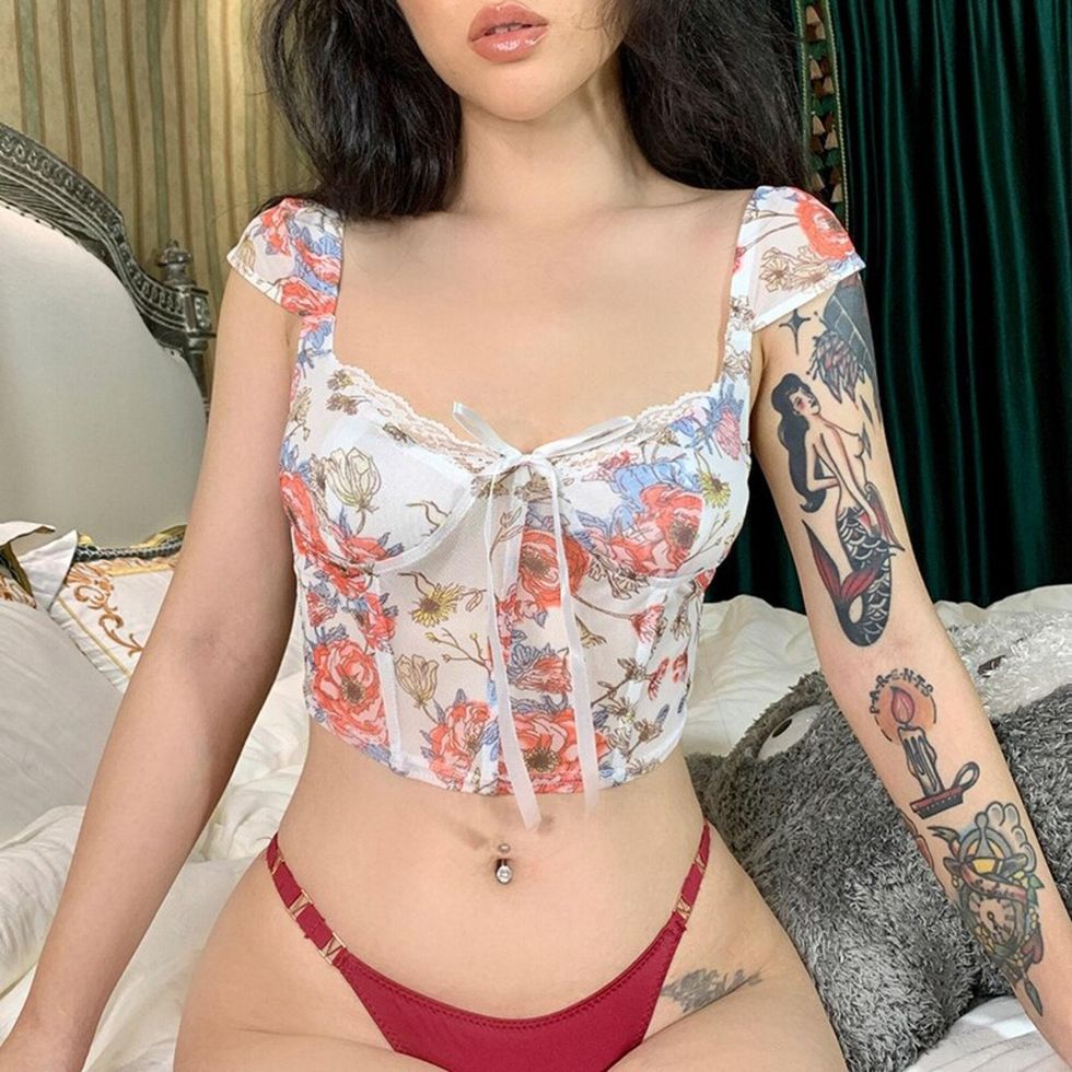 Thanks for reading about our favorite finds from across the internet! FYI: We participate in affiliate programs and may get a share of the revenue from your purchase.Rock a Lace Baby Tank with this Floral Y2K Crop Top