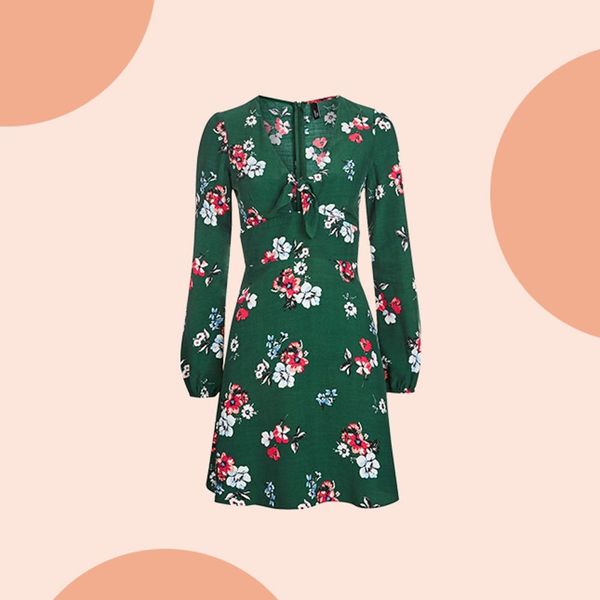 Nobody’s Child Nelly Floral Tie Front Dress ($56) + Dr. Martens Magdalena Ankle Boot ($160), Mango Snake Effect Bag ($70), Zara Painted Jacket ($100), J.Crew Poppy Drop Earrings ($58), Deborah Lippmann Iconic Treatment-Enriched Nail Polish in Sexyback ($18), Tory Burch Double Wrap Ring ($125)