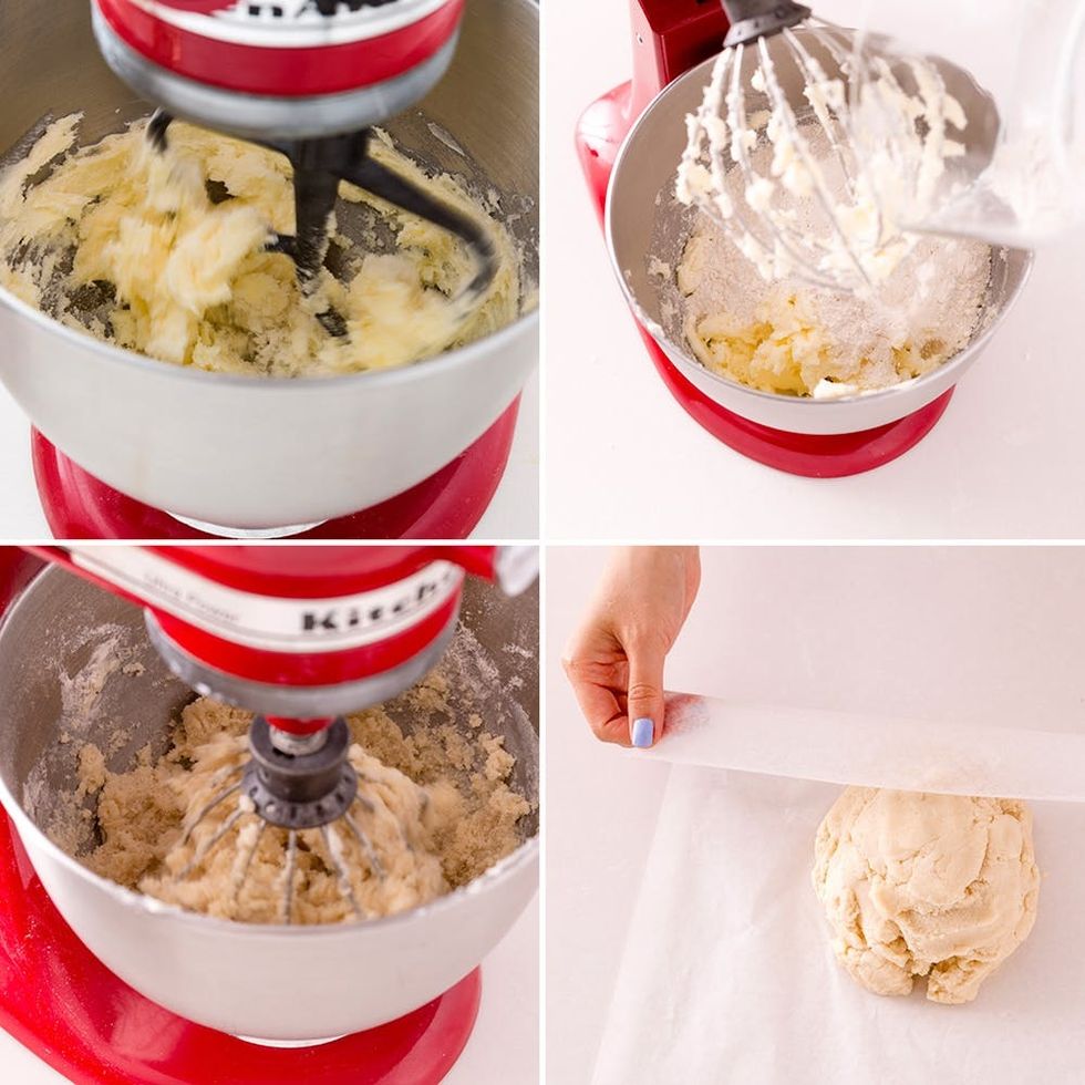 1. To make the cookie dough, stir together the flour, baking soda, and salt in a medium bowl.