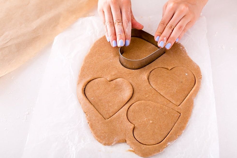 2. Roll out dough on floured surface and use a cookie cutter to cut out shapes. Place on lined cookie sheet and bake for 10-12 minutes at 350 degrees Fahrenheit, or until golden brown.
