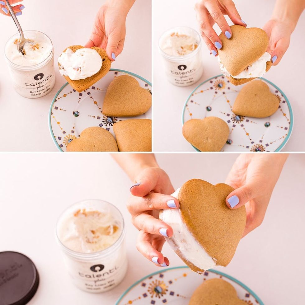 Chill cookies in refrigerator. Once chilled, scoop Talenti Key Lime Pie gelato on one cookie and place another cookie on top. Use a spoon or your finger to smooth out the edges. Serve immediately or freeze for another time.