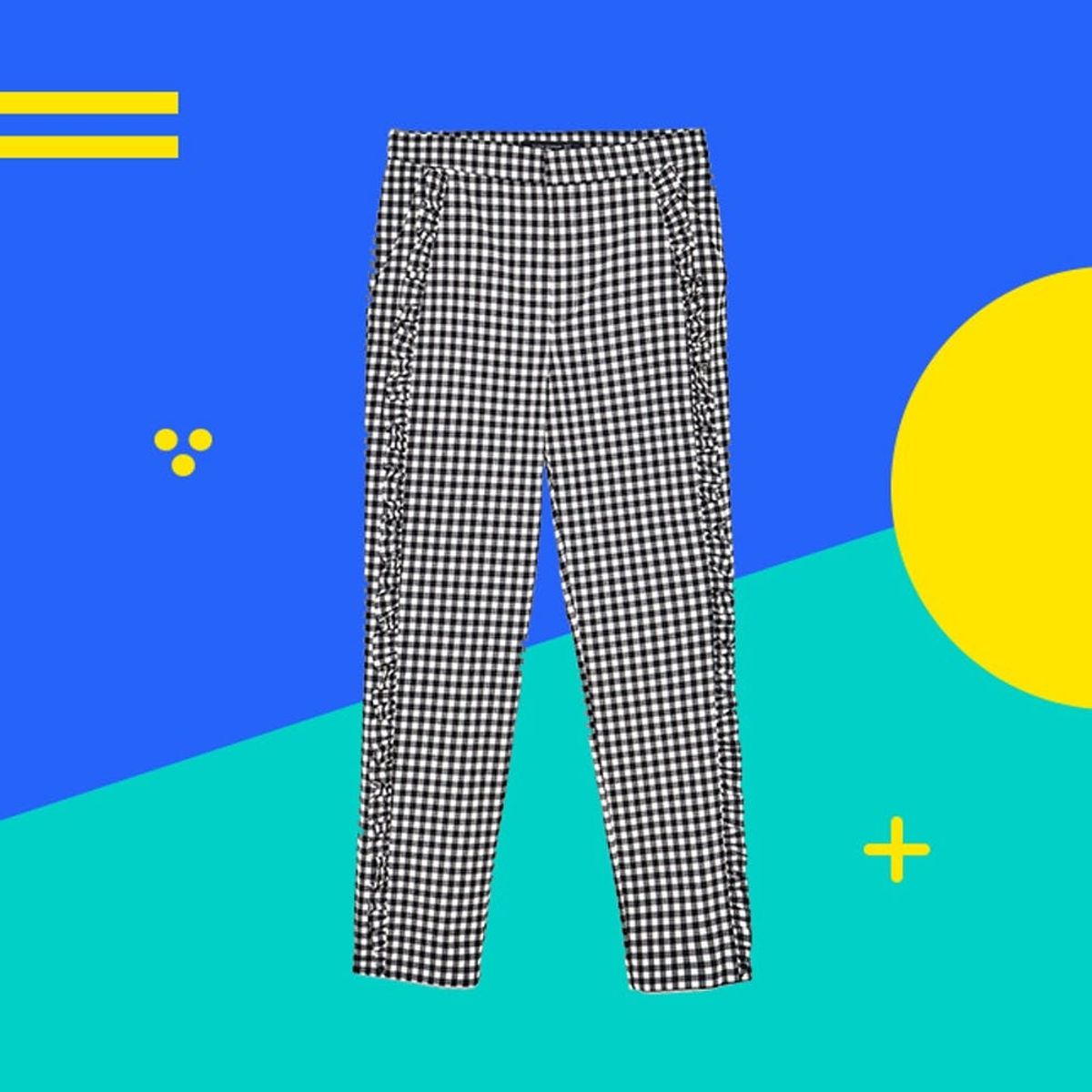 Gingham at work? It goes a little something like this. Ruffle-trimmed crop trousers decked out in the charming check print offer a solid base for your on-the-job style that’s both sweet and sophisticated. Paired with a corset-inspired button-down and don’t-mess stiletto booties, these pants get instantly upgraded to cool-girl status. Sculptural earrings and a dramatic berry lip further up the ante, while the addition of a classic timepiece — and potentially an oversized blazer — ensure your look doesn’t go in the direction of OTT.