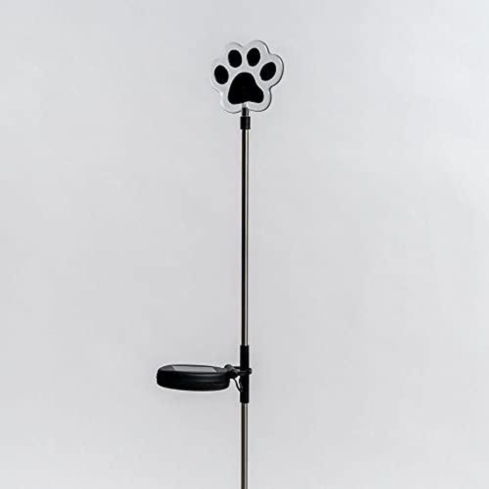 These Solar-Powered Paw Garden Stake Lights work as soft lighting for your garden decor, featuring two pathway paw print stake lights powered by a high-quality solar panel. They automatically turn on at dusk and off at dawn, providing a soft lighting feature in your garden or to light up your pathway. They are easy to install, and no outlet is required; for best results, charge in direct sunlight for a minimum of eight hours.