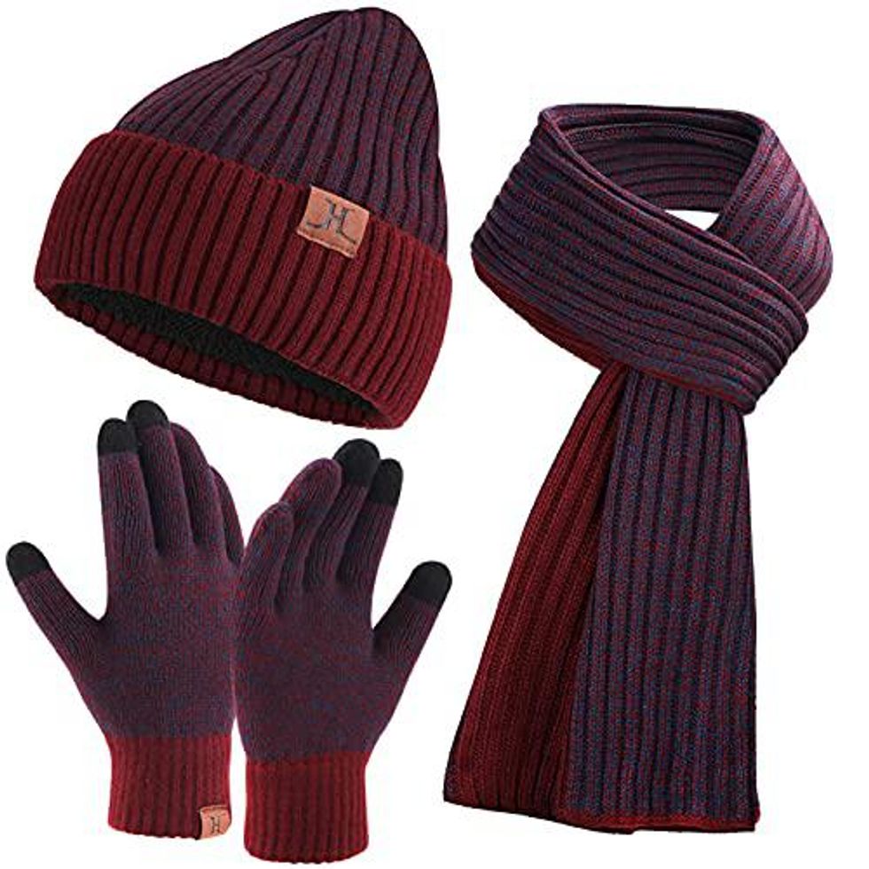 See it on AmazonA knit beanie, long scarf and touchscreen gloves set to look fashionable and keep war this winter