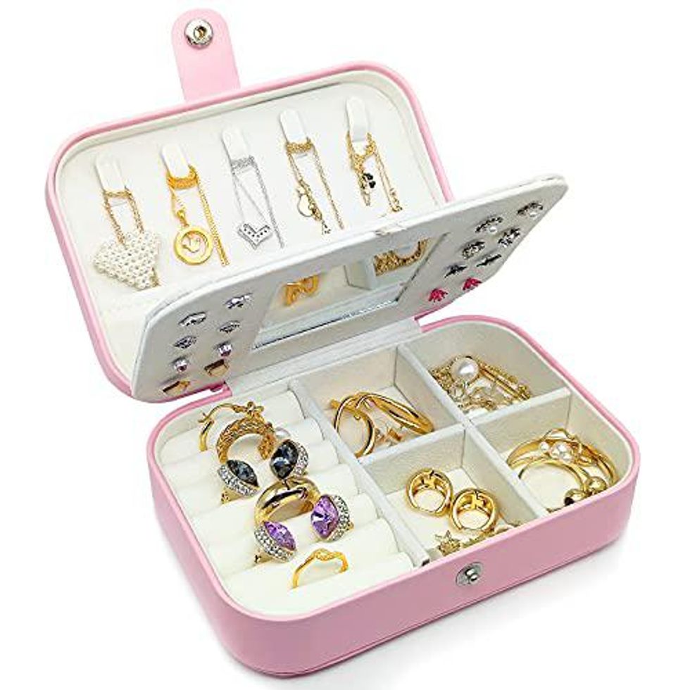 See it on AmazonThis jewelry box is cute and portable