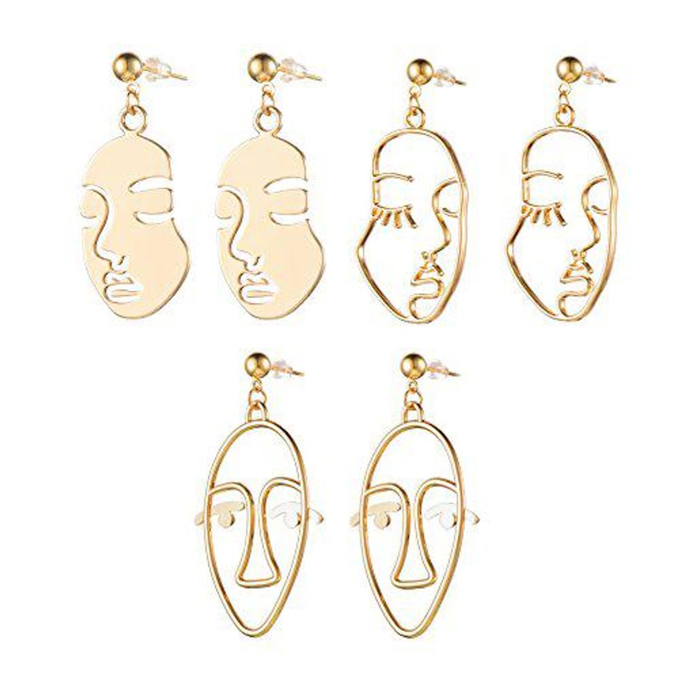 These face abstract gold earrings set comes with 3 pairs of different abstract face designs. They look absolutely stunning, the creative designs looking so fashionable and complimenting your outfit, taking your accessorizing game to a whole other level! Plus, they come well packaged with a black velvet bag.