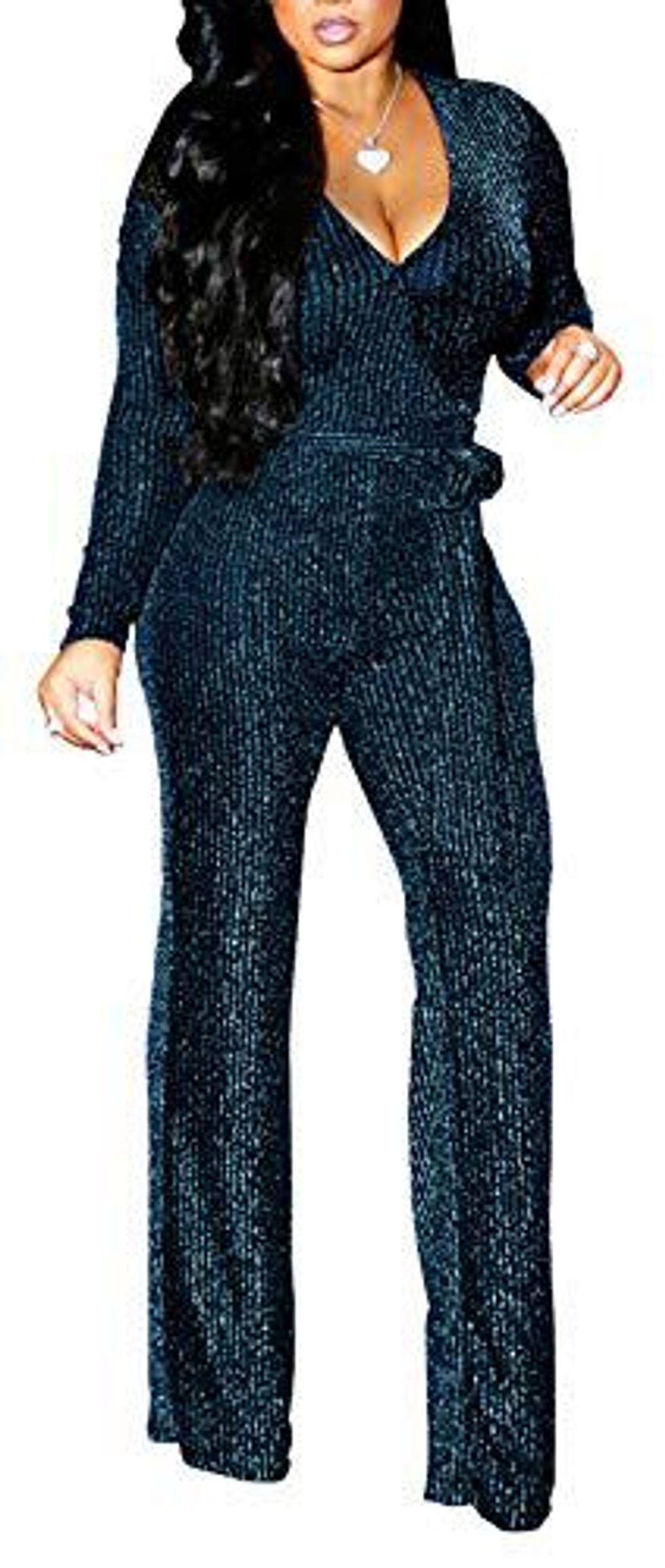 Are we looking to really pop off hotter and greater than you ever have before? I got it! This sparkly jumpsuit that has the most fun and sexy sparkly v-neck and glitter detailing will have your special someone falling for you all night long. Your legs, booty, arms and chest are just a few of the things that this little number is going to flatter on you every time you slide it on! I want it for me too!