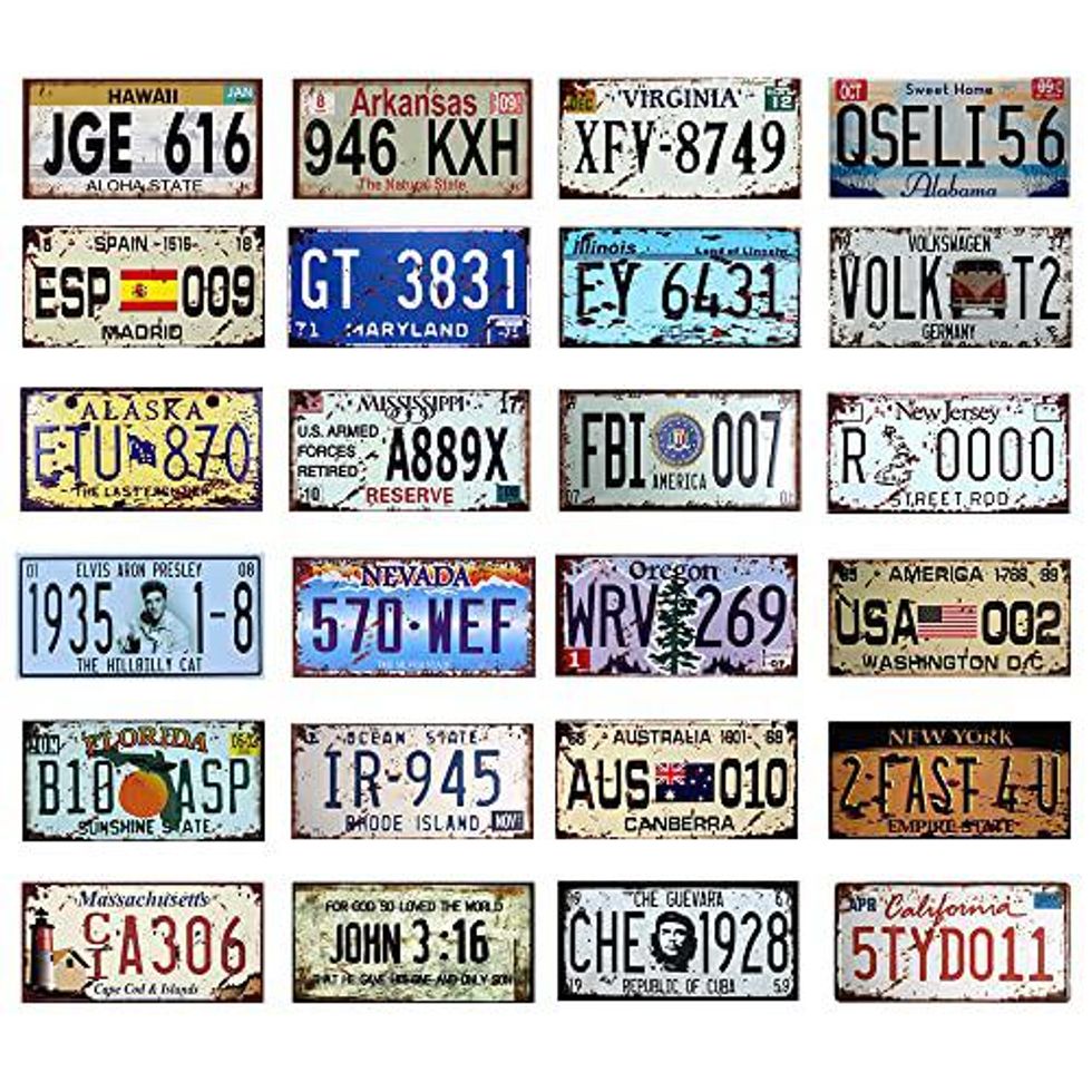 It's time to redecorate that basement, game room, bedroom or home with these Vintage License Plates that come in a pack of 24 different plates from a variety of countries and states. These vintage looking plates can add a vintage touch to your home, in addition to a pop of color. They make as a great gift or an even better addition to your home.