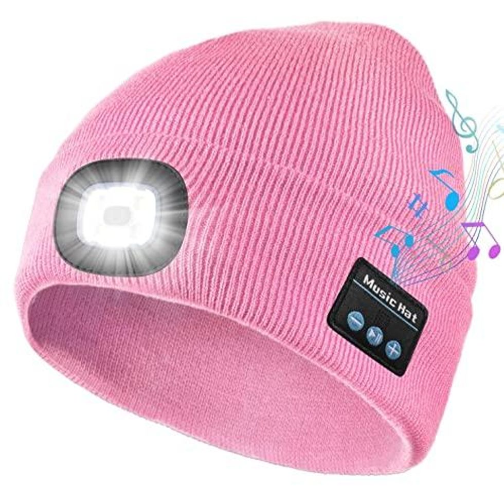 Keep your head warm and light up your area with this beanie! This awesome hat not only has a light on the front, but also has built in headphones and a microphone.