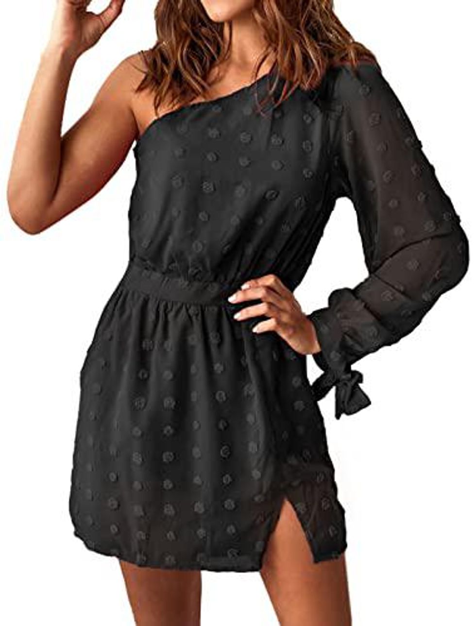 With tons of photos to show it off, this One Shoulder A Line Dress is the perfect length for anyone who has a little bit of extra height on them. It will get you covered, eliminating the fear of anything popping out. It has a stunning polkadot design and small slit on the legs, allowing you to show off your gorgeous legs without it being too much.