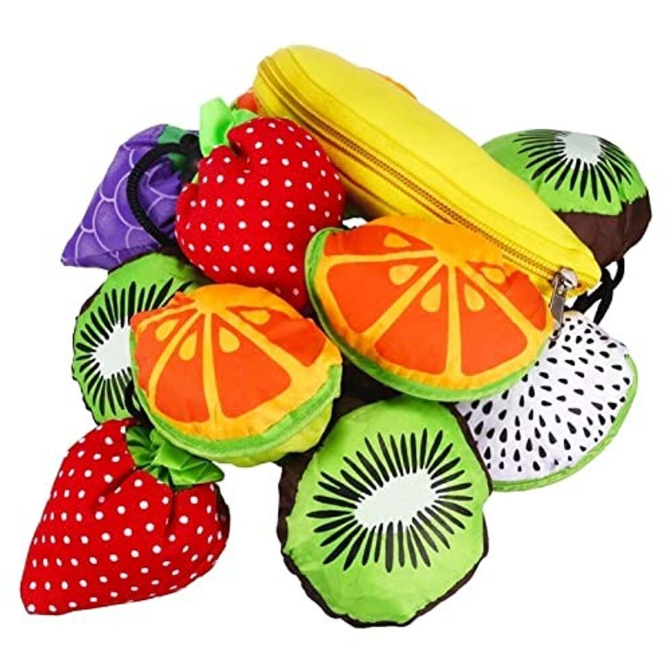 The exciting shapes of the reusable grocery bags makes them fun for bringing with you to the store. They fold up to make storing them ideal and expand to hold on to all your grocery list items.