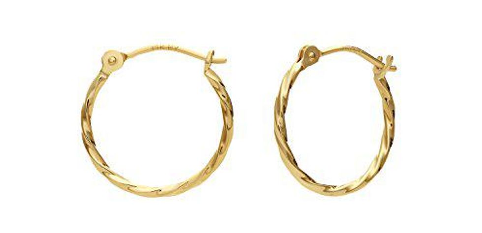 These 14-karat yellow gold earrings offer a delicate twisted design and thin construction and are available in a variety of sizes to pick from depending on your personal style preference.