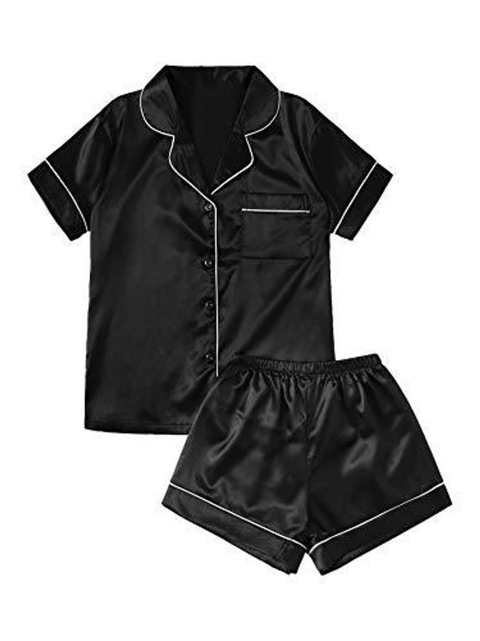 Matching pajama sets aren't just for the kids. Wear this short sleeve pajama set around the house or when going to sleep for a comfortable and lightweight feel.