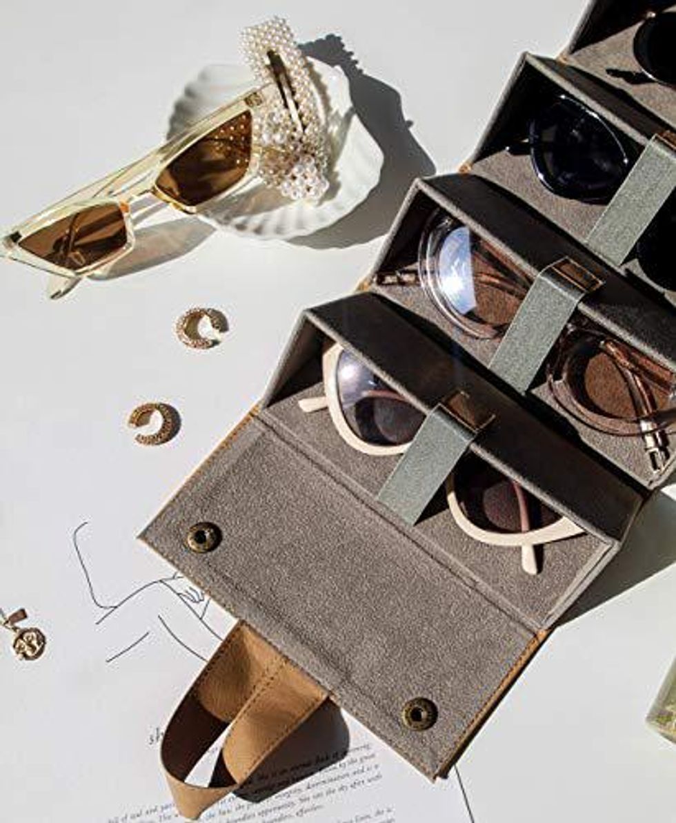 Speaking of hanging up and storing your accessories… I was blown away when I saw how convenient this sunglass organizer was and how great it would look in your closet or room in general. It comes in a variety of colors to match your home and it comes at an affordable price. Definitely a great Amazon find!