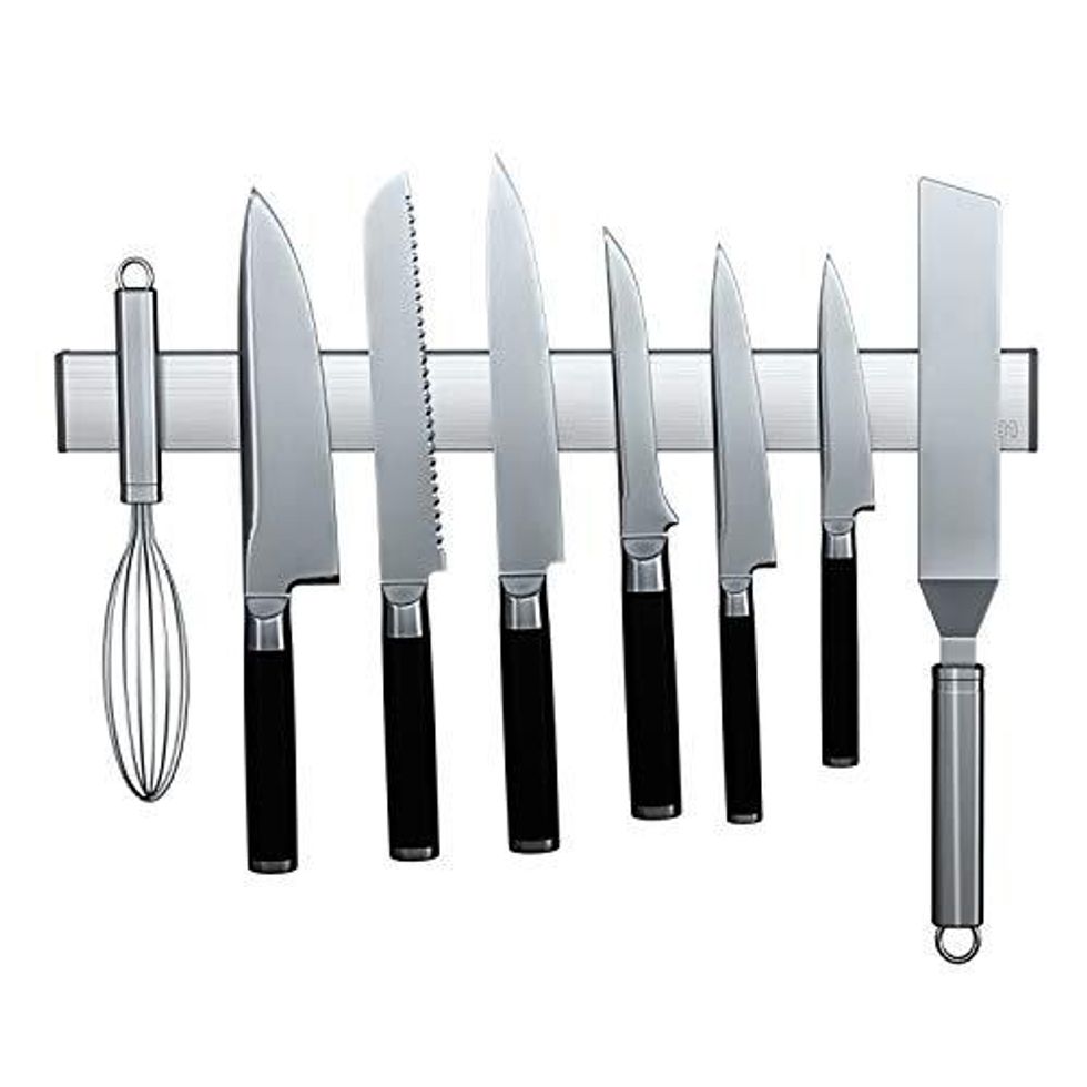 Knives shouldn’t be messed around with. However, we do use them in everyday life, so we need to keep them organized. When I was searching on Amazon, I came across this unique way of storing your knives. This is a magnetic knife holder that all of your knives will easily attach to. It comes in silver and black, so they should look good in your home!