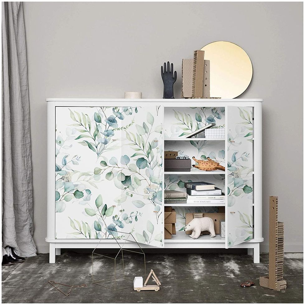 If you're like me, you don't want to put in a ton of effort to make your things look fresh and new. Here's a secret: peel and stick wallpaper goes a long way towards revamping anything, from walls to furniture. Use this leafy floral pattern to give literally anything a spring look.