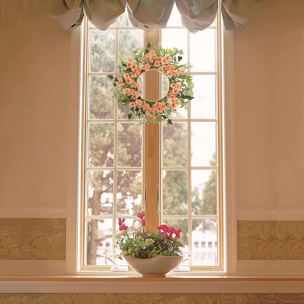 You might think that wreaths are just for the holidays, but they're actually a great decor option to set the tone for any time of year. This option features cherry blossoms and eucalyptus, and is utterly charming.