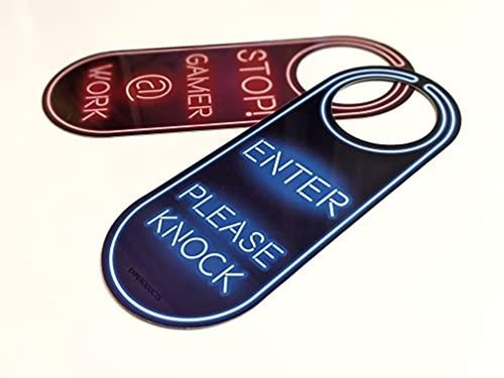 I love the neon look of this fun Do Not Disturb Door Hanger. Whether cramming for a test or playing a newly released video game, there will be times when every college student needs some alone time. The double-sided sign is printed on thick, high-quality plastic and is 9.5"x3.5" with a large 2.5" opening for the doorknob.