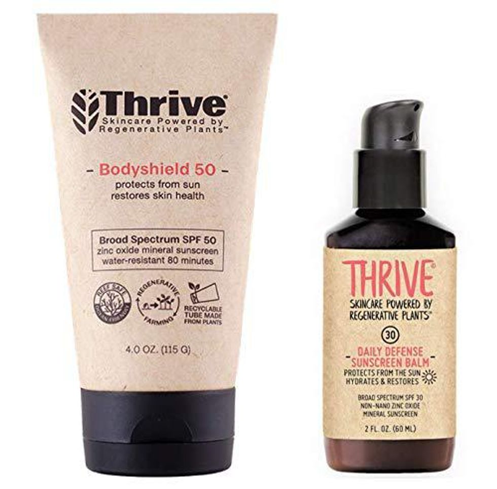 A good way to ruin a day at the beach is to forget the sunscreen and end up sunburned. Thrive Natural Mineral Sunscreen is a "safe and healthy alternative to chemical sunscreens." The Face SPF 30 provides broad-spectrum sun protection and Body SPF 50 provides water-resistant broad-spectrum protection. The Face and Body Sunscreens are available as a bundle or individually.