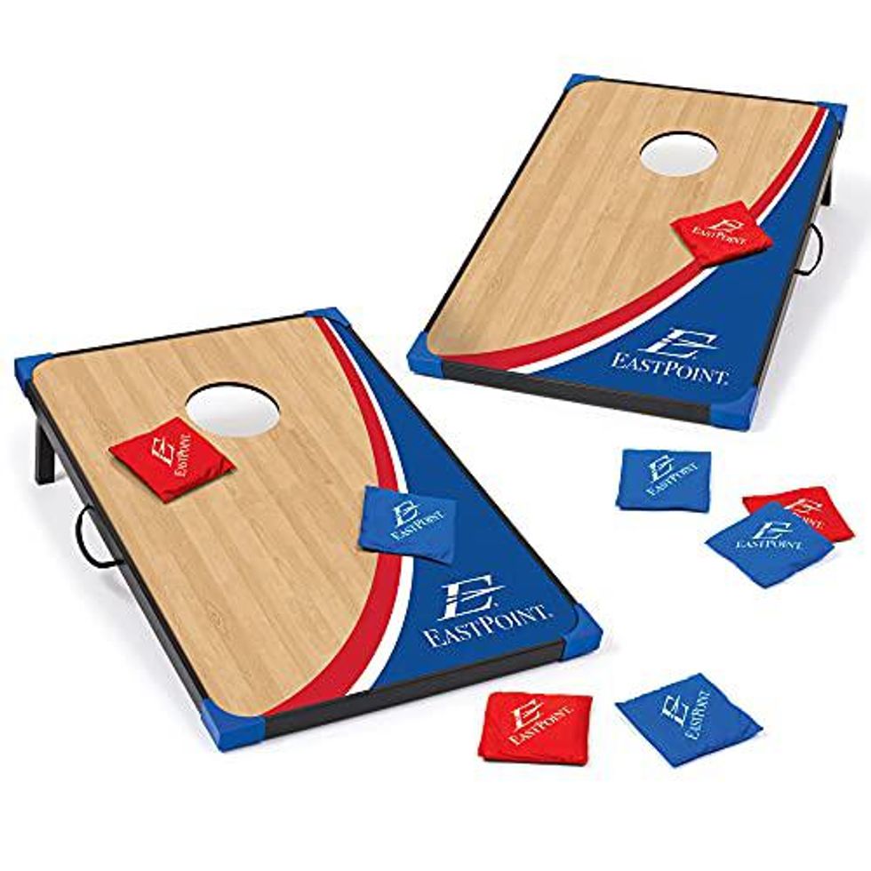 EastPoint Sports' Bean Bag Toss Game is designed for on-the-go fun. The 2 boards easily attach and have built-in carry handles. The Bean Bags can be stored in between the boards. The Set includes 2 Cornhole Boards and 8 durable, all-weather Bean Bags.