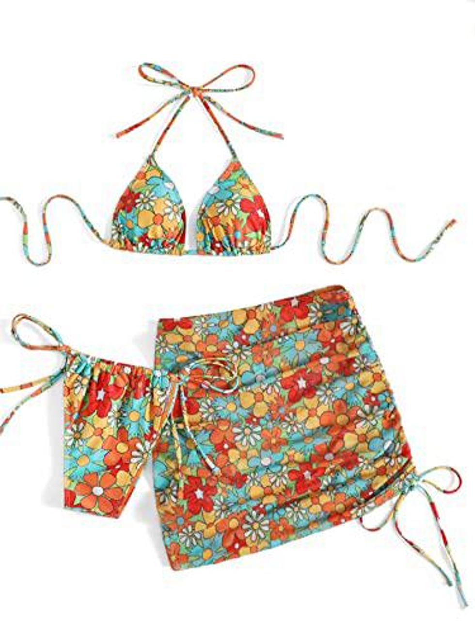 See it on AmazonA Triangle Bikini Bathing Suit That Has A Matching Mini-Skirt Coverup