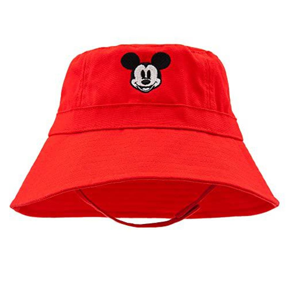 Disney's Mickey Mouse Swim Hat provides "UPF 50+ UVA and UVB protection from the sun," which is important for everyone, but especially babies. The hat is 100% cotton and has a chip strap with a self-stick closure. One size fits most infants.