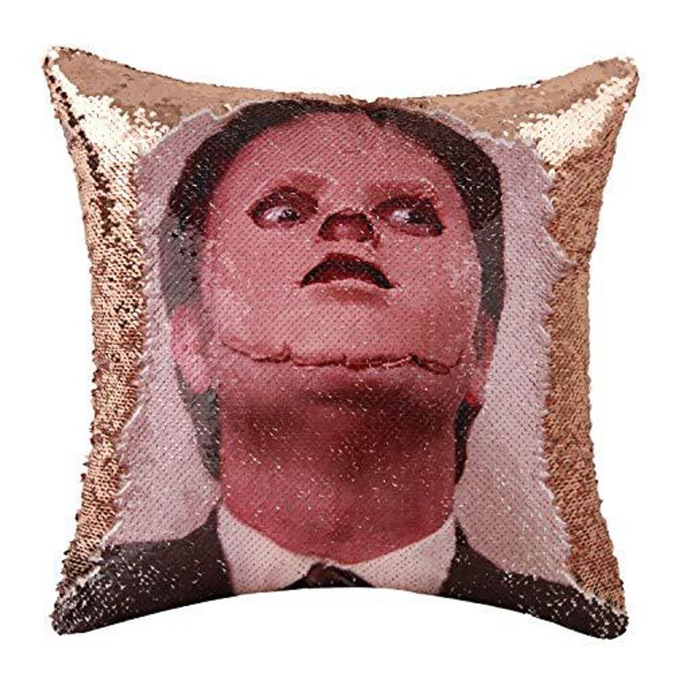 See it on AmazonThis Dwight Schrute sequin pillow cover that will bring both bling and humor to your place!