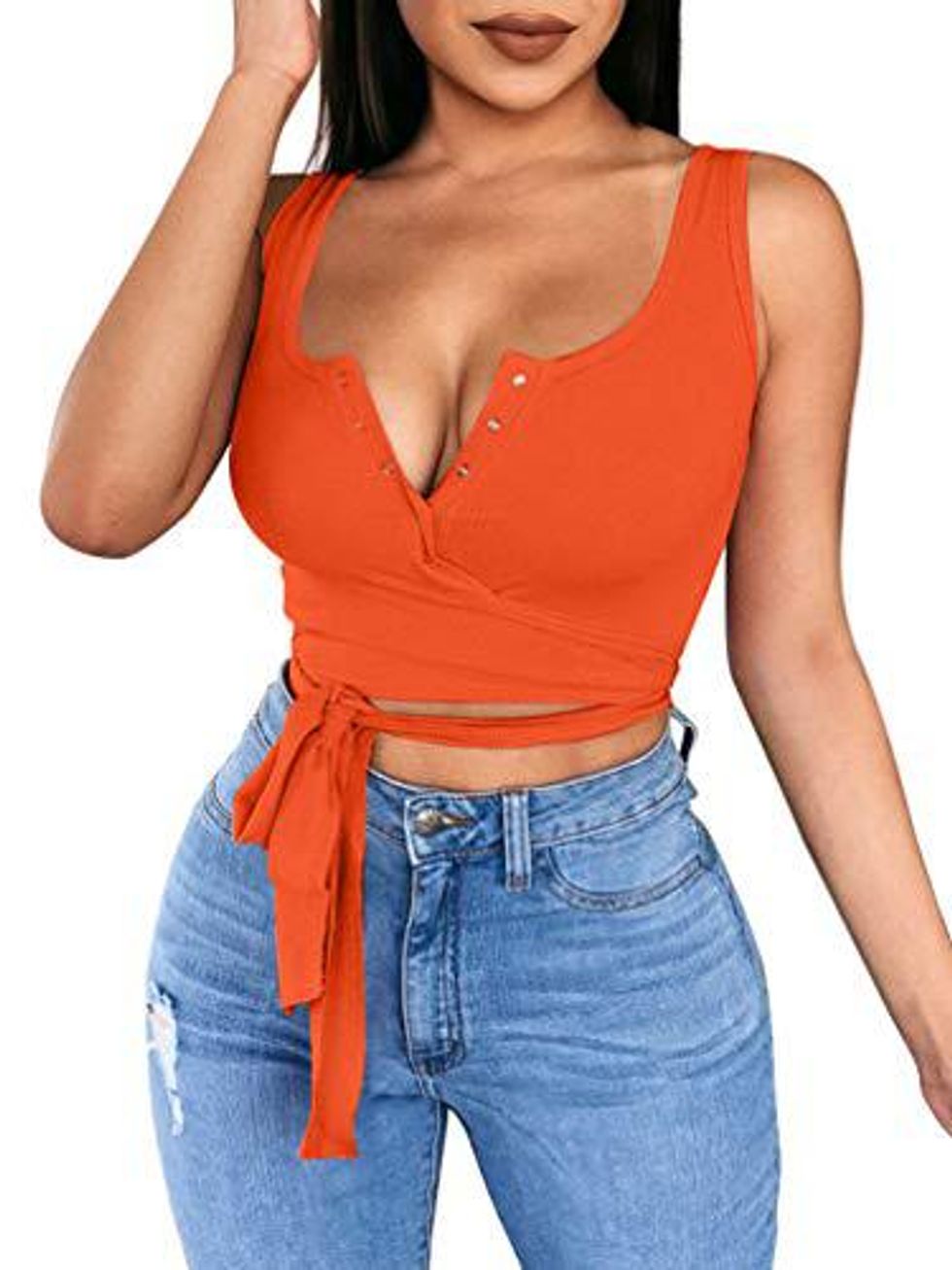 Haven't you heard? Orange is going to be the hottest color of the season! Pop off and be comfortable at the same time with this orange wrap tanktop that will feel soft on your skin but look sexy in everyone elses eyes! This top is comfortable to walk around in and is great to pair with shorts or a skirt on your next little vacation.