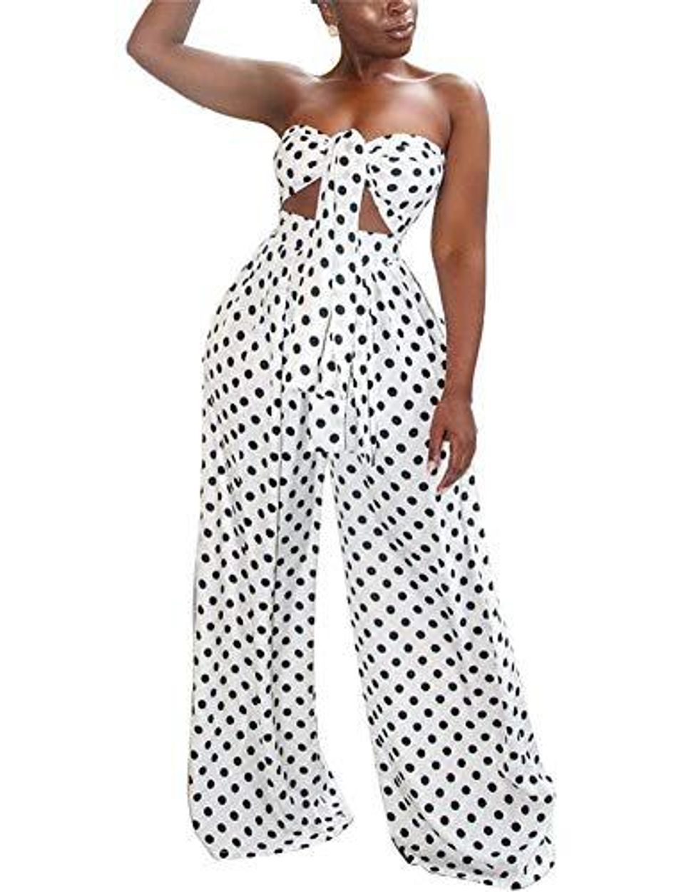 There is a special place in my heart for anything and everything polkadot so when I saw this strapless white jumpsuit with black polkadot detailing, it wasn't long before I was purchasing it on Amazon and waiting for it to arrive at my door. This outfit will flatter your chest and sinch your waist in ways that you didn't even know that you needed!