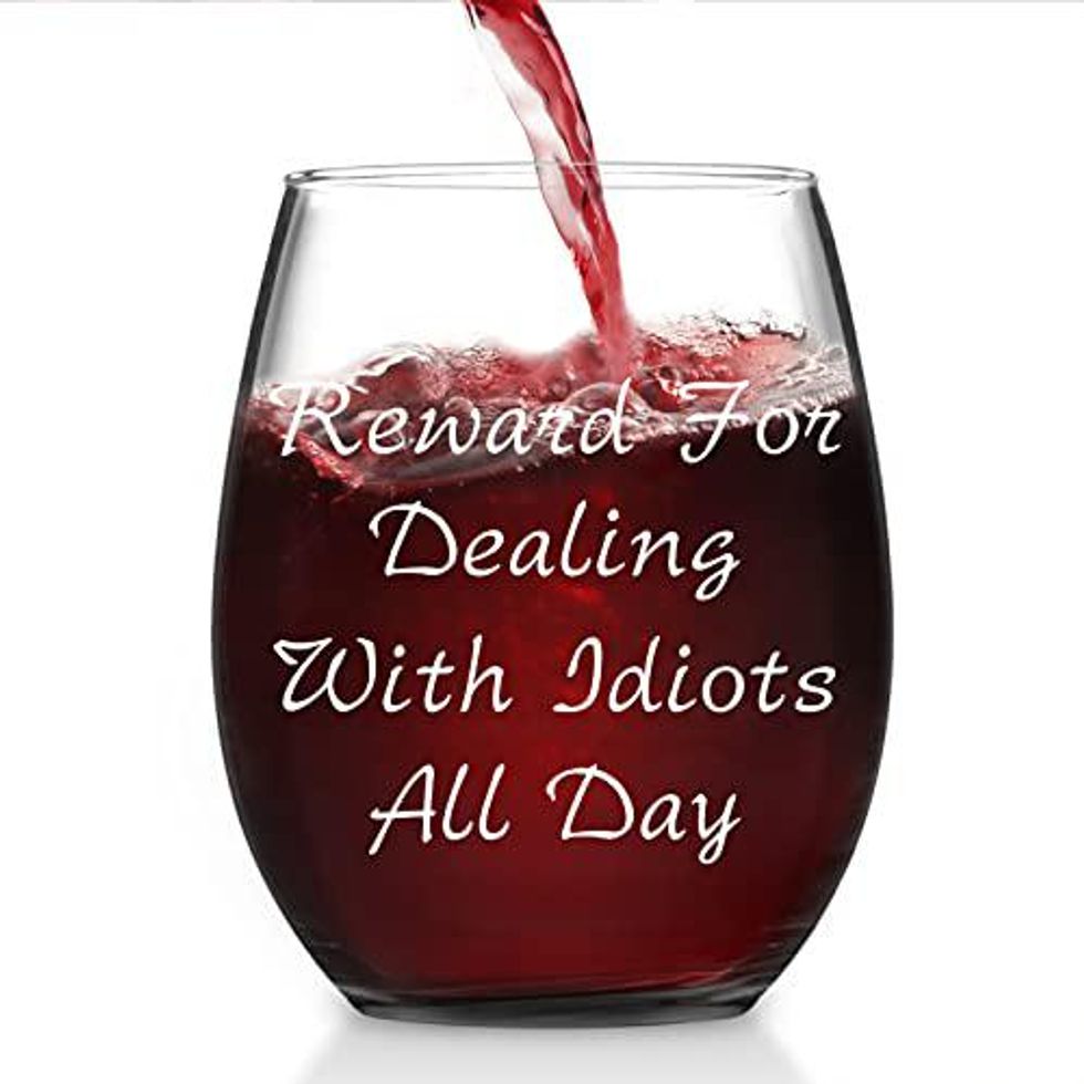 See it on AmazonGift The Futtumy Reward For Dealing With Idiots All Day Stemless Wine Glass 15oz To Your Friend Who Can't Stand Others
