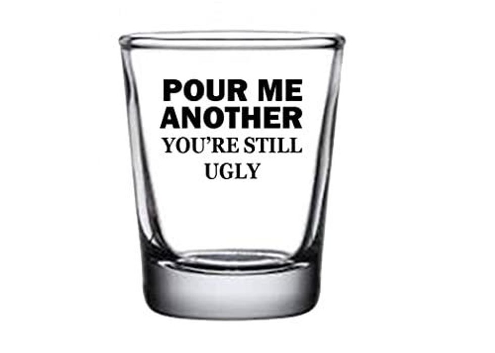 See it on AmazonThe Funny Pour Me Another You're Still Ugly Shot Glass Gift For Your Friend With Bad Taste