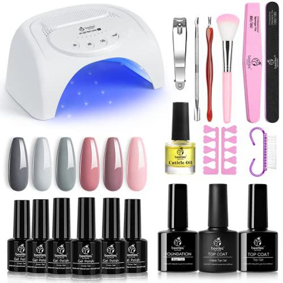 This Beetles Gel Nail Polish Kit comes with all the essentials that you need to do your nails in the comfort of your own home! With 6 gel nail polish colors, a UV light nail lamp, your base gel and top coat, cuticle oil and manicure tools, you can give yourself the most gorgeous nails without spending a fortune.