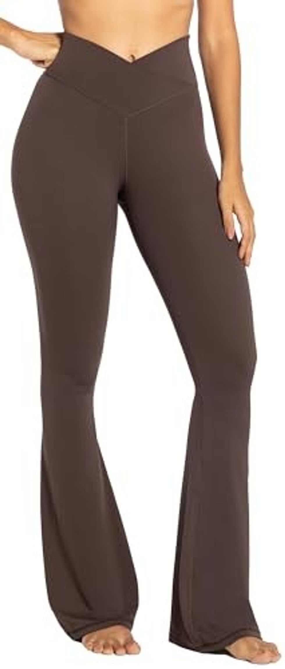 Brown is the color of the season, and these flare leggings are the perfect way to incorporate it into your wardrobe. They're made from a buttery soft material that can be worn for workouts or daily activities. The crossover waistband is super flattering and will give you an hourglass shape.