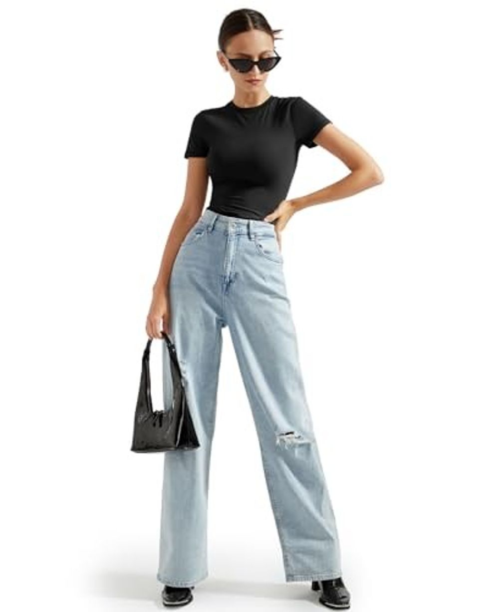 This double-lined crop top is an excellent investment for fall. It pairs well with anything from joggers to a cute skirt for a night out. It features a flattering V-neck made from a thick double lining, ensuring it won’t be see-through, even in lighter colors.