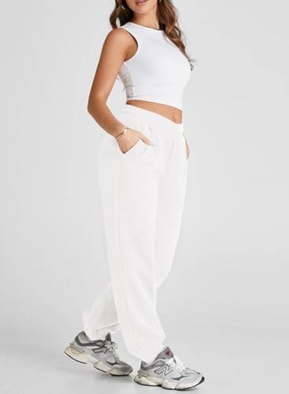 Add a touch of flair to your everyday sweatpants look with these high-waisted joggers. The crossover waistband gives you a cinched waist and pairs perfectly with your favorite crop top. They have a baggy fit throughout, offering a trendy Y2K vibe.
