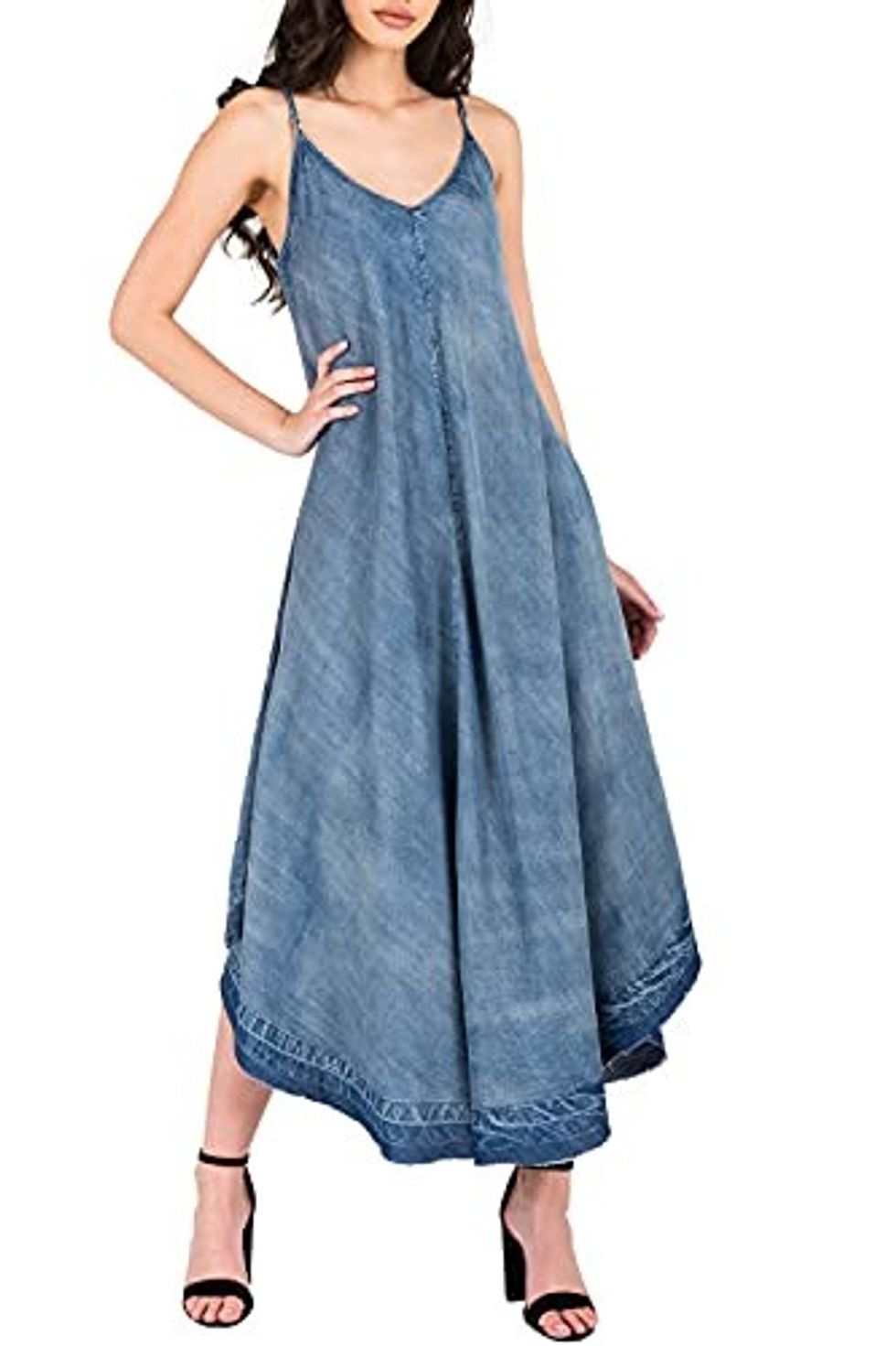 Denim has been dominating lately, but if you're not a huge fan of the heavier look of a denim jacket, you can still incorporate it into your style with this bold and flowing denim dress.