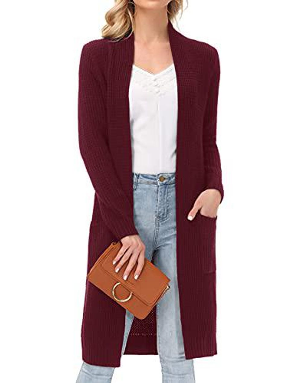 The knee-length cardigan is also your best friend in the transitional months. It can be what keeps you from freezing at the end of winter, and metamorphose in your coat at the beginning of spring. This waffle wine colour is super stylish.